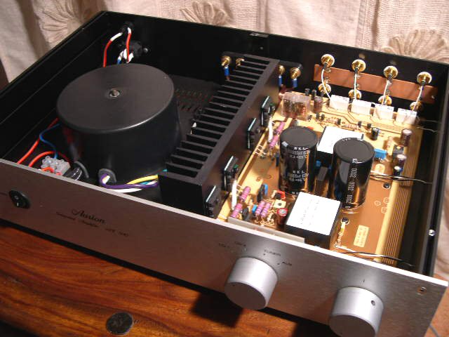 La selezione dei quattro ingressi solo linea è effettuata attraverso relais a tenuta stagna con contatti in argento-palladio dorati, il potenziometro di volume è un pregiato ALPS serie blu, il limitato cablaggio presente è in rame argentato isolato in teflon e il trasformatore è un poderoso toroidale incapsulato, allo scopo di azzerare vibrazioni e flusso magnetico disperso.